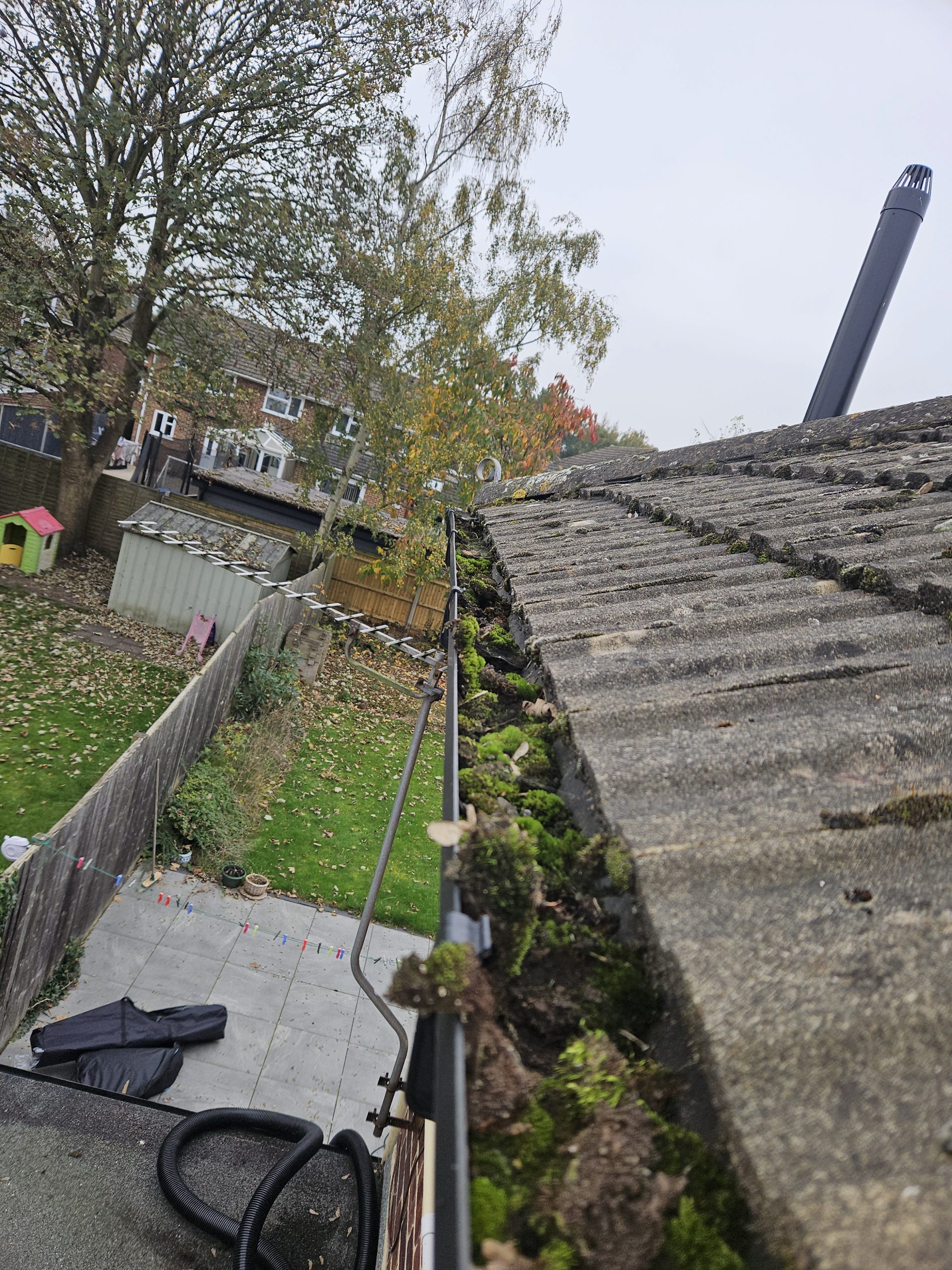 At Revitalise, we’ve moved beyond old-fashioned ladders and buckets. We utilize an industrial-grade, high-suction vacuum system paired with ultra-lightweight carbon-fibre poles. This allows us to clear your gutters safely and efficiently from the ground, lifting even the heaviest sodden moss, stagnant water, and rooted weeds directly into our waste system.